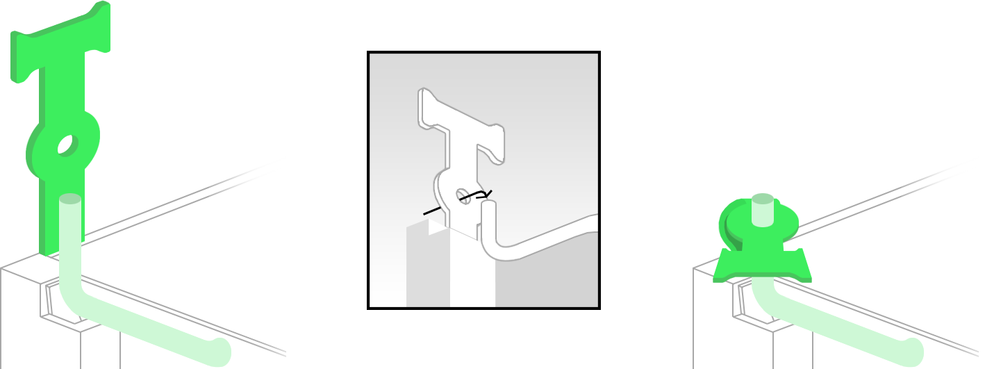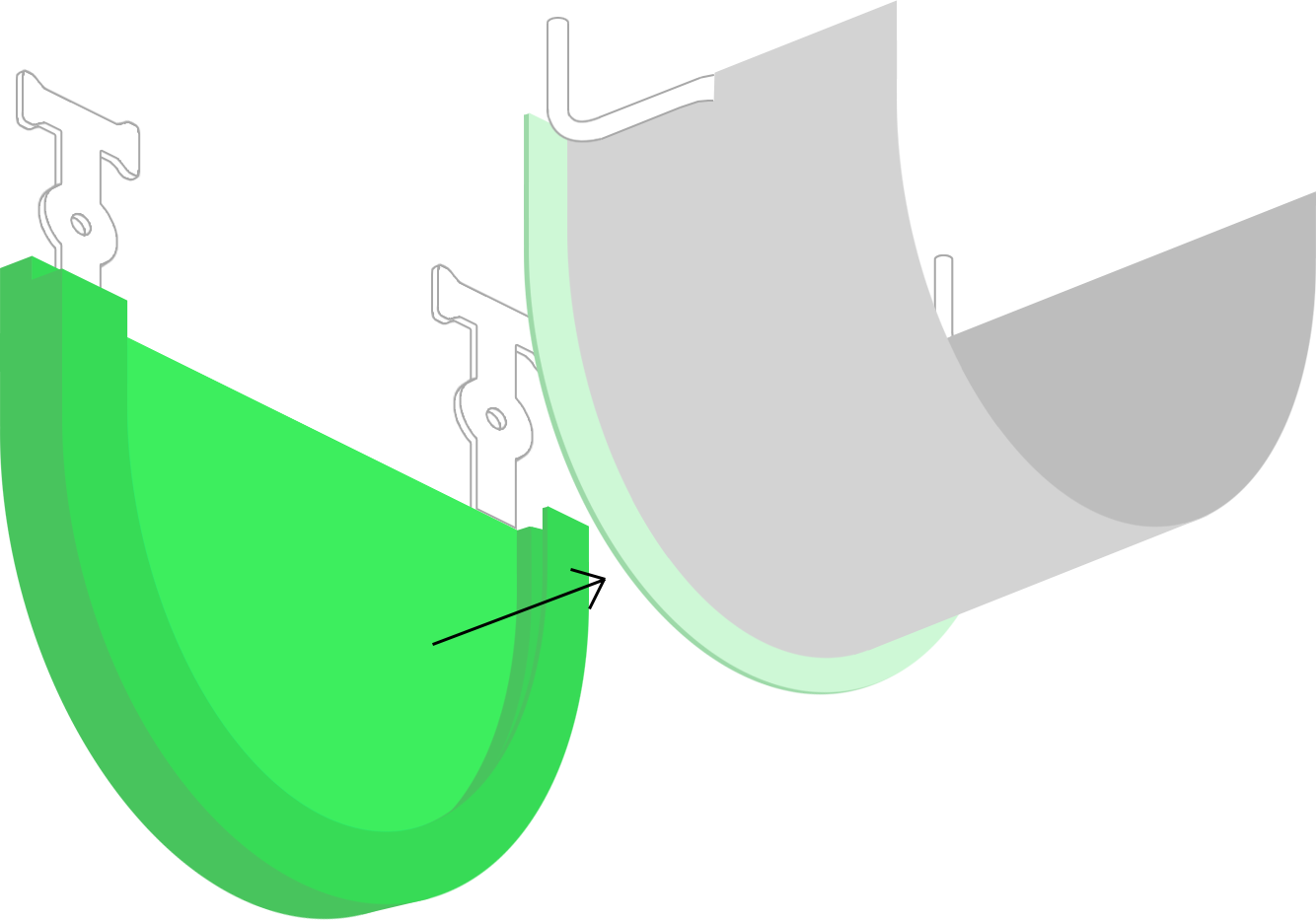 Befestigen Sie die Schlaufen des Auslaufschutzes durch deren Loch an die Halterungen der Betonrutsche.
